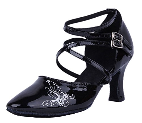 A perfect latin dance shoes is necessity for every dancer. Double buckle design ensure a comfortable fit, a lovely butterfly on the patent leather upper, catching all the eyes. A little round toe and easy walking kitten heel pamper your foot around the clock. If you want to wear this wonderful dance shoes outdoor, please tell the customer service that you want the rubber sole before shopping. If you have any question about the shoes, please feel free to contact with us.