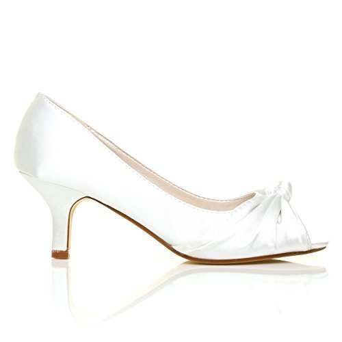 Best Seller! PARIS White Satin Kitten Medium Heel Bridal Peeptoe Shoes Size UK 6 EU 39 Review